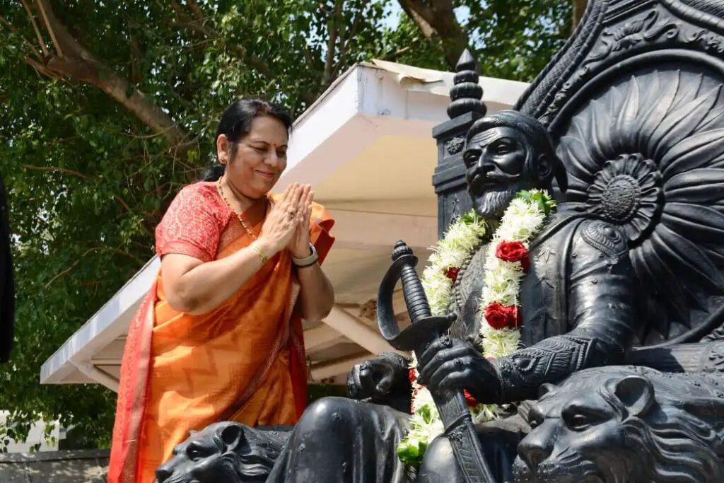 विधानपरिषद उपसभापती डॉ. नीलम गोऱ्हे यांनी महाराजांच्या पुतळ्यास पुष्पहार अर्पण करत कृतज्ञतापूर्वक अभिवादन केले.