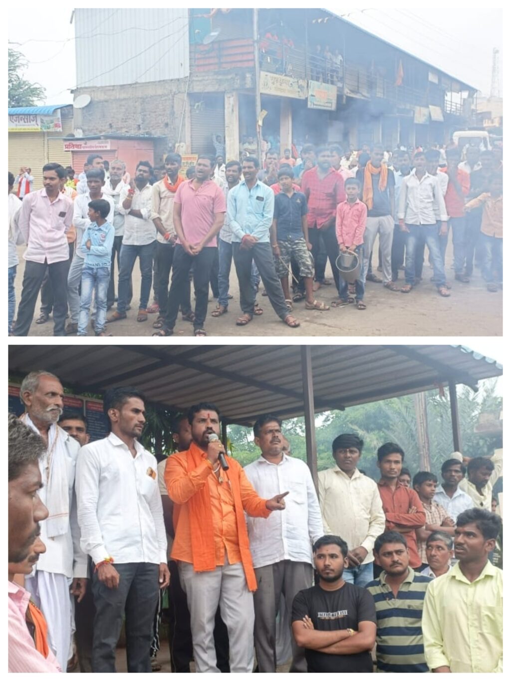 नांदेड (पेठवडज) :- मराठा समाजाला सरसकट ओबीसी प्रवर्गातून आरक्षण मिळावे यासाठी समाज बांधवांच्या वतीने जालना जिल्ह्यातील अंतरवाली सराटी (ता.अंबड) येथेल उपोषण कर्त्यांवर लाठीमार झाला. या घटनेचा पेठवडज ता कंधार येथील मराठा समाजाच्या वतीने निषेध मोर्चा व गावबंद चे आयोजन करुन सकाळी नऊ ते सायंकाळी सहा वाजेपर्यंत बंद पाळुन राज्य शासनाचा निषेध करण्यात आला व शिवसेनेचे तालुकाप्रमुख परमेश्वर जाधव यांनी जालना जिल्ह्यातील मराठ्यांवर केलेल्या लाठीमारातील संबंधित दोशी अधिकारी कर्मचारी यांना धडा शिकवल्या शिवाय शांत बसणार नाही असे आव्हान सकल मराठा समाजाच्यावतीने केले. यावेळी पांडुरंग कंधारे , हरिश्चंद्र राजे, खुशाल राजे, तिरुपती जाधव, नामदेव डावकोरे, देविदास कारभारी तसेच पेठवडज येथील सर्व मराठा बांधव उपस्थित होते.