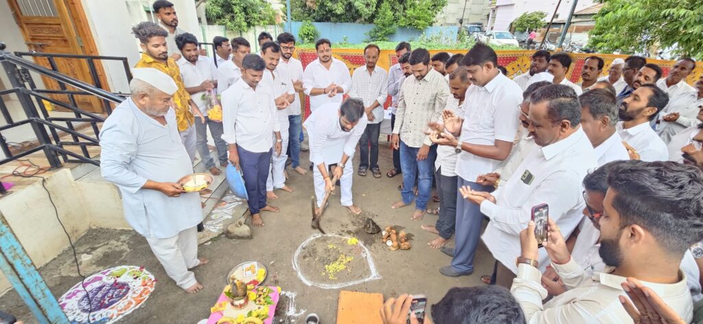 माळीनगर ता माळशिरस येथे श्री संत सेना महाराज मंदिराच्या सभामंडपाच्या भूमिपूजनाचा समारंभ शुभारंभ माळशिरस विधानसभेचे माजी आमदार श्री राम सातपुते यांच्या शुभहस्ते पार पडला