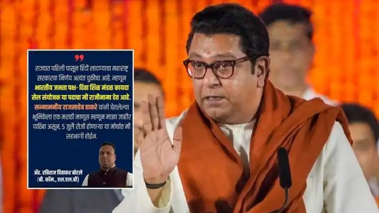 रविराज बोटले हे पेशाने वकील आहेत. त्यांच्या नावाने व्हायरल होत असलेल्या मेसेजनुसार ते भाजपच्या दिवा शीळ मंडल कायदा सेलचे संयोजक आहे. या पदाचाच त्यांनी राजीनामा दिला आहे. त्यांनी म्हटले आहे की, राज्यात पहिलीपासून हिंदी लादण्याचा महाराष्ट्र सरकारचा निर्णय अत्यंत चुकीचा आहे. म्हणून मी भारतीय जनता पक्षा – दिवा शिळ मंडळ कायदा सेल संयोजक या पदाचा राजीनामा देत आहे.