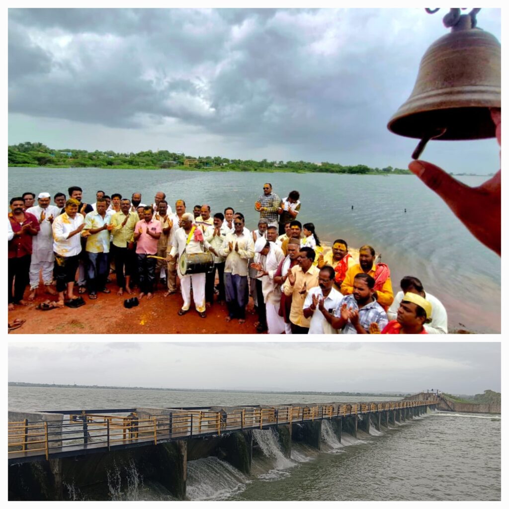 पुरंदर जेजुरी : पुरंदर तालुक्यातील जयाद्रीची जीवनवाहिनी आणि साक्षात मल्हारी मार्तंडाची पवित्र कऱ्हामाई नदीच्या पूजना करिता गुरुवारी गाव सारा जमा झाला होता, संपूर्ण महाराष्ट्र राज्याचे कुलदैवत तीर्थक्षेत्र जेजुरी येथील कुलदेवता मल्हारी मार्तंड मूर्ती स्नानाची पवित्र कऱ्हा नदी नुकत्याच झालेल्या पर्जन्यवृष्टी मुळे खळखळून भरून वाहू लागल्याने जेजुरी ग्रामस्थ खांदेकरी,मानकरी,गावकऱ्यांसह मंदिर संस्कृती उपासक गुरव, ब्राम्हण,पुजारी,वीर,कोळी,घडशी असे अठरा पगड जाती धर्माचे लोक कऱ्हामाईच्या आरती पूजनाला उपस्तिथ होते.