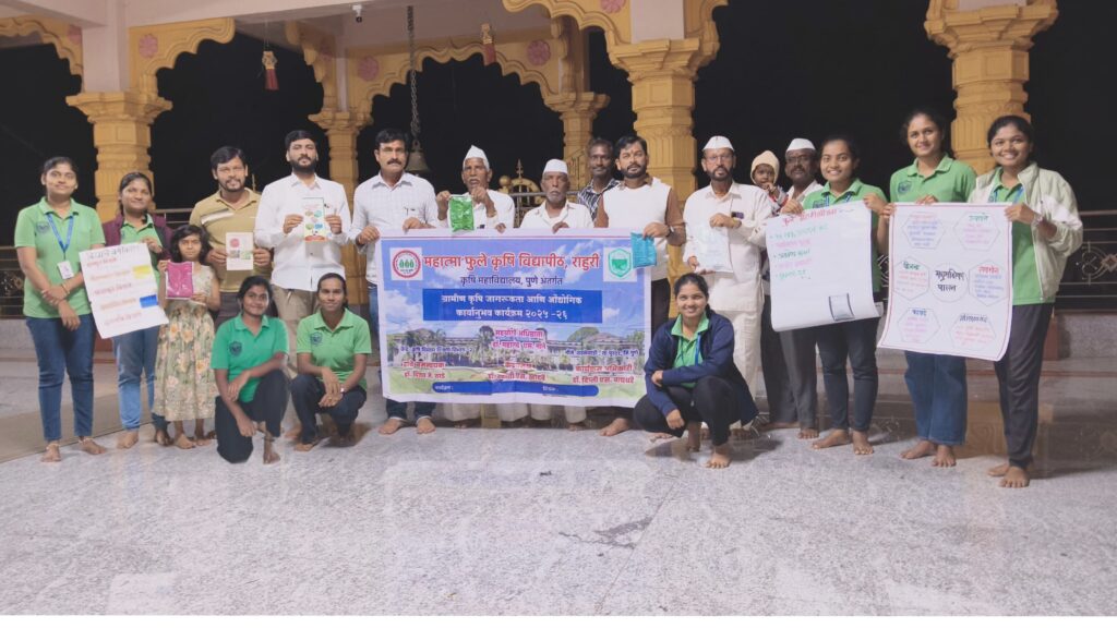 जेजुरी पुरंदर : ग्रामीण कृषी जागरूकता आणि कार्यानुभव कार्यक्रम RAWE अंतर्गत कृषी महाविद्यालय पुणे येथील कृषिकन्यांनी शास्वत शेती बद्दल जनजागृती कार्यक्रम राबवला या कार्यक्रमाअंतर्गत रायझोबीयम, ऍझेटोबॅक्टर,ऍझोस्पिरिलम वापरून नत्र स्थिरीकरण कसे होते, तसेच मेटारायझियमच्या वापराने फळपिकांवरील रस शोषणाचा किड्या, हुमणी आळी, मावा, तुडतुडे,पांढरी माशी यांचा प्रादुर्भाव कमी कसा होतो आणि गांढुळ खताची निर्मिती व वापर याबद्दल सविस्तर मार्गदर्शन करण्यात आले.