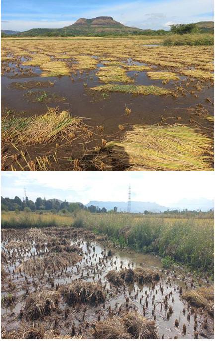 काही ठिकाणी शेतकऱ्यांनी पिकांची कापणी सुरू केली असतानाच पावसाने जोर धरल्याने कापलेला भात वाळविण्यास सुद्धा अवकाश मिळाला नाही. परिणामी ओलसर भात कुजला असून शेतकऱ्यांच्या मेहनतीवर अक्षरशः पाणी फिरले आहे. भाज्यांच्या शेतांमध्ये टमाटे, मिरची आदी पिके पावसामुळे सडली आहेत व पावसाचा तडाखा बसला आहे.ग्रामीण भागात रस्ते चिखलमय झाल्याने शेतीमाल वाहतुकीवरही परिणाम झाला आहे. काही ठिकाणी शेतीचे बांध वाहून गेले असून शेतकऱ्यांच्या शिवारात पाणथळ झाल्याने मातीची धूप वाढली आहे.स्थानिक शेतकरी म्हणाले, “आम्ही वर्षभर कष्ट करून पिक उभं केलं, पण या अवकाळी पावसाने सर्व नासून गेलं. आता सरकारने तातडीने पंचनामे करून नुकसानभरपाई द्यावी, नाहीतर पुढील हंगाम कसा चालवायचा हा मोठा प्रश्न उभा राहिला आहे.”