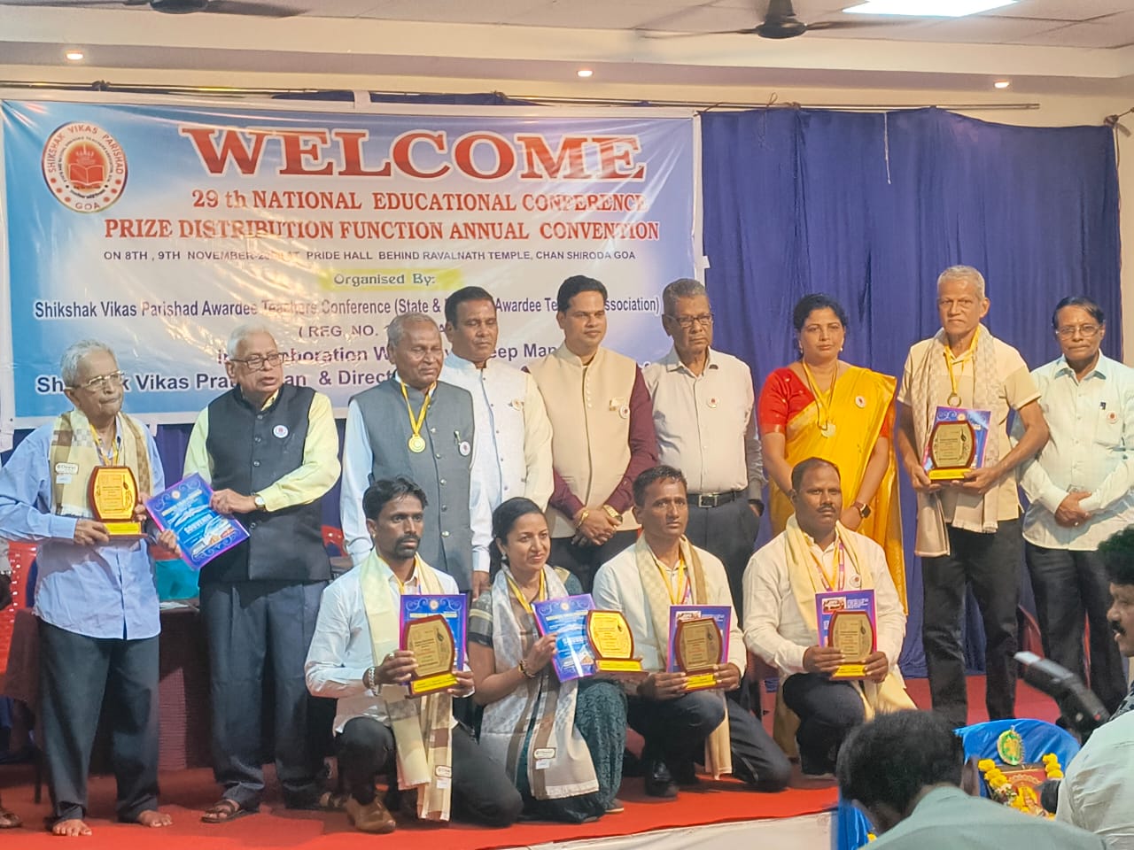 गोवा दि.१० (प्रतिनिधी): शिक्षक विकास परिषद, ज्ञानदीप मंडळ, शिक्षक विकास प्रतिष्ठान गोवा आणि गोवा सरकारच्या कला व संस्कृती संचालनालय यांच्या संयुक्त विद्यमाने आयोजित २९ व्या राष्ट्रीय स्तरावरील शैक्षणिक परिषद व वार्षिक अधिवेशनाचा पारितोषिक वितरण समारंभ नुकताच गोव्यातील प्राईड हॉल, रावळनाथ मंदिराजवळ, शिरोडा (गोवा) येथे उत्साहात पार पडला.