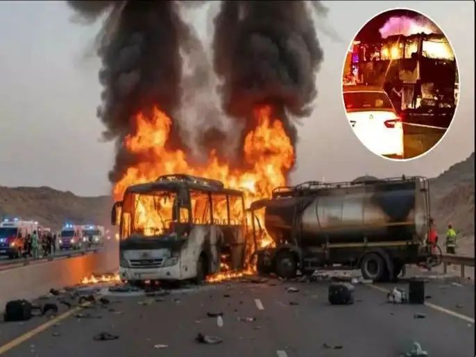 सौदी अरेबियात एका भीषण बस दुर्घटनेत ४२ भारतीयांचा मृत्यू झाला आहे. उमरहा करण्यासाठी गेलेल्या भारतीय यात्रेकरूंच्या बसची डिझेल टँकरला जोरदार धडक बसली. त्यातून आगीचा भडका उडाला ज्यात बस पूर्णपणे जळून खाक झाली.