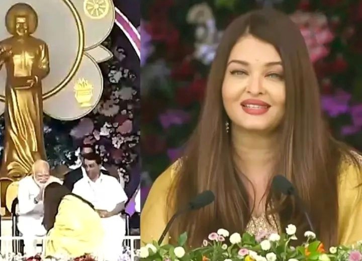 दरम्यान, या समारंभाचा एक व्हिडीओ व्हायरल झाला असून या व्हिडीओमध्ये दिसते की, ऐश्वर्या राय बच्चन हिने व्यासपीठावर आल्यानंतर पंतप्रधान नरेंद्र मोदींच्या पाया पडली आणि त्यानंतर तिने जाती आणि धर्मावर भाषण केले.