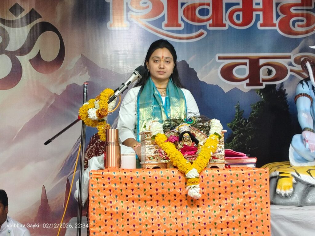 येथील पुरातन अशा शिव मंदिर जीर्णोद्धार समितीचे वतीने स्थानिक आठवडी बाजाराच्या मैदानात महाशिवरात्री पर्वावर गेल्या ११ फेब्रु पासून प्रारंभ झालेल्या शिवपुराण कथा सोहळ्यात दुसऱ्या दिवसाचे (ता.१२)पुष्प गुंफताना त्या बोलत होत्या. आयुष्यात संगत ही अतिशय महत्त्वाची आहे.आयुष्यात कुसंगत लाभली तर आपल्या आयुष्याचे मातेरे होते.आयुष्यात एक चूक आपले पूर्ण आयुष्य उद्ध्वस्त करू शकते.विसंगतीने एकाचे चांगले तर दुसऱ्याचे वाईट होते.वादविवाद टाळून संवाद करण्यावर भर द्यावा.संवादातून अनेक जटिल आणि खितपत पडलेले प्रश्न निकाली निघू शकतात.सर्व प्राणिमात्रावर दया करा.खरा तो एकची धर्म जगाला प्रेम अर्पावे असे सांगून……..सर्वांना प्रेम वाटत चला.आपल्या धर्मावर,देशावर आणि आईवडिलावर प्रेम करा.प्रेमाने सर्व काही साध्य होते असे सांगून ज्या घरातील स्त्री ही दुःखी आणि कष्टी असते तेथे सदैव दारिद्र्य वास करते. स्त्री चा सन्मान करा तीला प्रेम द्या. ज्या घरात नारी हसते हसती खेळती असते तेथे प्रत्यक्षात विष्णूदेव वास करतात.त्या घरात शक्यतो कोणताही वाद नसतो.मानवी जीवनातील चिंता आणि दुःख घालविणारी ही शिव कथा असल्याचे सांगून