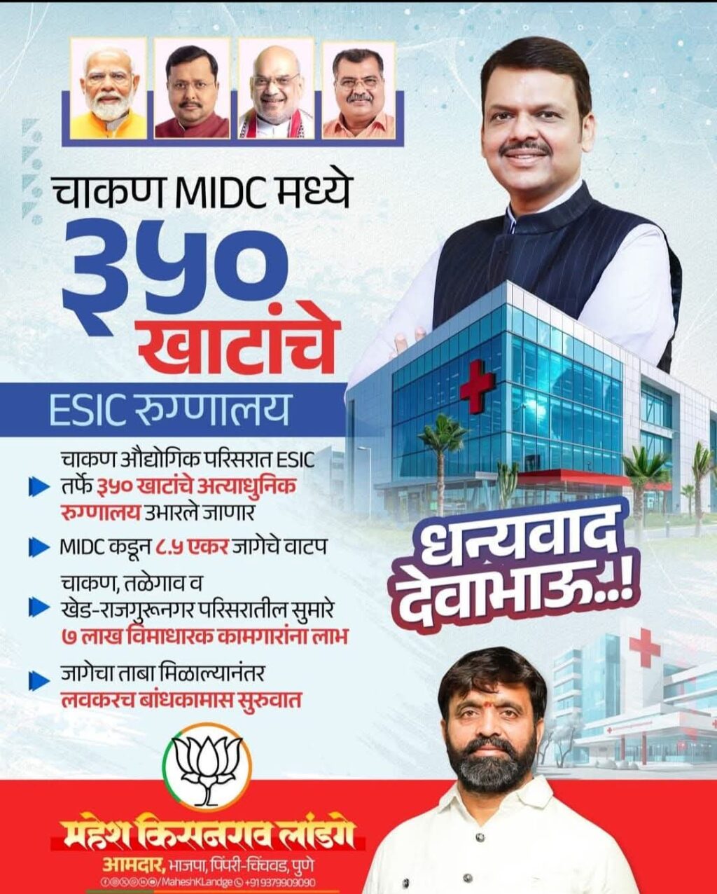 (ESIC) तर्फें चाकणमध्ये ३५० खाटांचें अत्याधुनिक