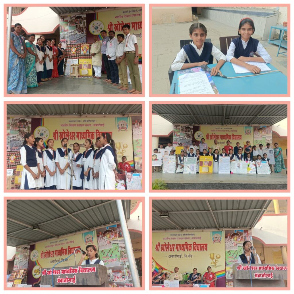 अंबाजोगाई (प्रतिनिधी) :- येथील श्री खोलेश्वर माध्यमिक विद्यालयात पाचवी ते सातवी विभागामध्ये आज राज्यभाषा मराठी दिनाच्या निमित्ताने विविध कार्यक्रमांचे आयोजन करण्यात आले होते.या कार्यक्रमाच्या अध्यक्षस्थानी शाळेचे उपमुख्याध्यापक श्री शैलेंद्र कंगळे सर तर मंचावर