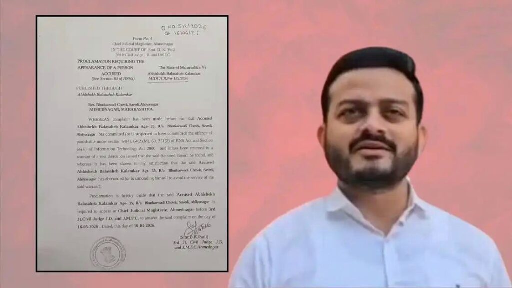 अभिषेक कळमकर याला पकडण्यासाठी न्यायालयाने ‘स्टॅडिंग वाॅरंट’ बजावले. या कारवाईत कळमकरच्या मालमत्तेवर देखील टाच येऊ शकते. ही कारवाई सुरू असतानाच, न्यायालयाने तीन दिवसापूर्वी ‘फरार घोषित जाहीरनामा’ नोटीस काढली. ही नोटीस आता पोलिसांनी न्यायालयाच्या आदेशाप्रमाणे सार्वजनिक केली आहे.