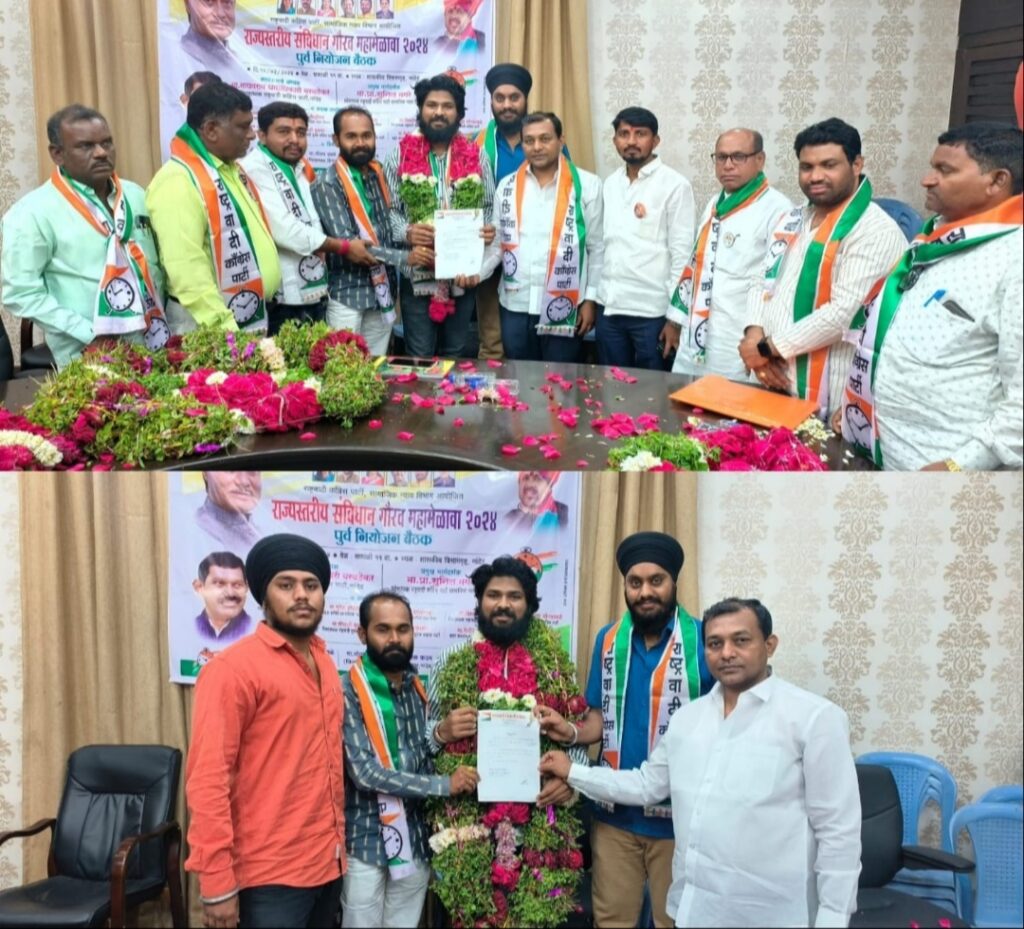 नांदेड :-दि.१४ फेब्रुवारी २०२४ रोजी, नांदेड येथील शासकीय विश्रामगृह येथे मान्यवरांच्या हस्ते श्री अक्षय उत्तमराव सोनकांबळे यांना नियुक्तीपत्र देऊन निवड करण्यात आली.त्यांच्या सामाजिक व शैक्षणिक क्षेत्रात उत्कृष्ट कार्याची दखल घेऊन नांदेड उत्तर विधानसभा मतदारसंघाच्या अध्यक्षपदी निवड करण्यात आली आहे.यावेळी डॉ. उत्तमराव सोनकांबळे (नेते, राष्ट्रवादी काँग्रेस पार्टी महाराष्ट्र प्रदेश) श्री. प्रसादभाऊ पवार (जिल्हाध्यक्ष, राष्ट्रवादी विद्यार्थी काँग्रेस नांदेड शहर) श्री. फिरोजभैया पटेल (शहर कार्याध्यक्ष, राष्ट्रवादी काँग्रेस पार्टी नांदेड) श्री. तेजिंदरसिंघ ढाकनीवाले (कार्याध्यक्ष, राष्ट्रवादी विद्यार्थी काँग्रेस नांदेड शहर) श्री. ॲड. बाळासाहेब सोनकांबळे (जिल्हाध्यक्ष, राष्ट्रवादी काँग्रेस पार्टी सामजिक न्याय विभाग नांदेड) श्री. संभाजीभाऊ मुकनर (अध्यक्ष, राष्ट्रवादी युवक काँग्रेस नांदेड ग्रामीण) श्री. अतुलभाऊ हिंगमिरे (जिल्हाध्यक्ष, नांदेड उत्तर राष्ट्रवादी युवक काँग्रेस) यांची उपस्थिती होती. अक्षय सोनकांबळे यांच्या निवडीचे सर्वच स्तरातून अभिनंदन करण्यात येत आहे.शुभेच्छाचा वर्षाव होत आहे भावी वाटचालीस शुभेच्छाऐ देत आहेत. त्याबद्दल श्री अक्षय उत्तमराव सोनकांबळे यांनी सर्वांचे मनापासून आभार मानले आहेत आणि पुढील काळात असेच सहकार्य असूद्या असे म्हटले आहे.
