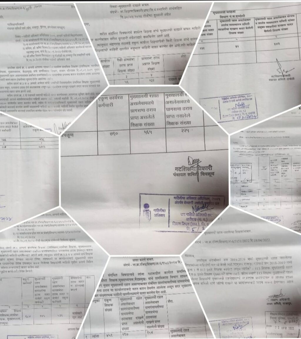 रत्नागिरी :- रत्नागिरी जिल्ह्यातील शिक्षकांच्या मुख्यलय बाबत आज कित्येक महिने-वर्ष पाठपुरावा सुरू असताना,माहिती अधिकार मधून आज जिल्ह्यातील सर्व तालुका निहाय किती शिक्षक हे शासनाचा आदेश शासन परिपत्रक दि.०९-सप्टेंबर २०१९ नुसार ग्रामसभे चे ठराव मुख्यलयी बाबत उपलब्ध करून रितसर राहत आहेत, या उलट शासनाच्या या परिपत्रकाचे उल्लंघन करून, सरपंच आणि शाळा समिती चें दाखले अनधिकृत रित्या जोडून करोडो रूपये उकळतत आहेत,आणि त्यात वरीष्ठ अधिकारी शिक्षण विस्तार अधिकारी, शिक्षणाधिकारि सुद्धा सोबतीनं काम करत असलेच चित्र या मिळालेल्या कागदपत्रानुसार दिसून येत आहे.वारंवार शिक्षण अधिकारी समनधित पंचायत समिती, गटशिक्षणाधिकारी यांना पत्राद्वारे सूचित करूनही कोणीही त्या पत्राची दखल घेत नसलेचें दिसत आहे,आणि म्हणूनच तर काय अधिकारी शासनाच्या तिजोरीवर डल्ला मारणार्या शिक्षकांना वाचविण्यासाठी शिक्षण अधिकारी, विस्तार अधिकारी फक्त कागदी घोडे नाचवित असल्याचं आरोप करण्यात आला आहे.