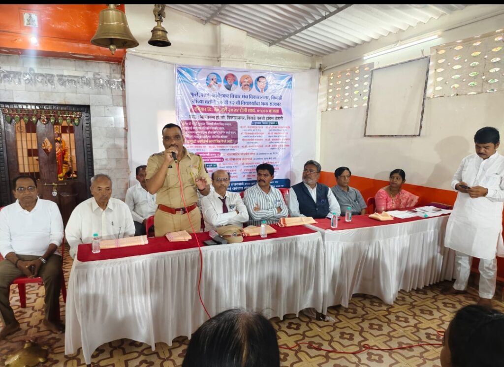 शाहू फुले आंबेडकर विचार मंच ,आणि रमाई महिला बचत गट यांच्या वतीने ,इयत्ता दहावी बारावीतील गुणवंत विध्यार्थ्यांचा गौरव चिन्ह सन्मान ,सफाई कामगार महिलांना रेनकोट वाटप,बांधकाम कामगारांना ओळखपत्र ,रेशनिंग कार्डचे वाटप ,आणि विवाहास पन्नास वर्षे पूर्ण झालेल्या जोडप्यांचा सन्मान , देहूरोड पोलीस ठाण्याचे वरिष्ठ पोलीस निरीक्षक विजय वाघमारे ,किशनचंद्र खंडेलवाल ( प्राचार्य जे.एस.पी.एम.कॉलेज )