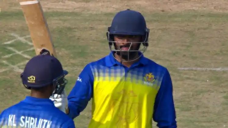 स्मरणने 92 बॉलमध्ये 3 सिक्स आणि 7 फोरसह 101 धावांची शतकी खेळी केली. तर अभिनव मनोहर आणि क्रिष्णन श्रीजीथ या दोघांनी निर्णायक खेळी केली तरत कर्नाटकाला 300 पार पोहचवण्यात निर्णायक भूमिका बजावली. अभिनवने 42 चेंडूत 4 षटकार आणि 10 चौकारांच्या मदतीने 79 धावा केल्या. तर क्रिष्णनने 74 बॉलमध्ये 105.41 च्या स्ट्राईक रेटने 1 सिक्स आणि 9 फोरसह 78 रन्स जोडल्या. तर कॅप्टन मयंक अग्रवाल याने 31 धावा केल्या. अनीश केव्हीने 23 धावांचं योगदान दिलं.