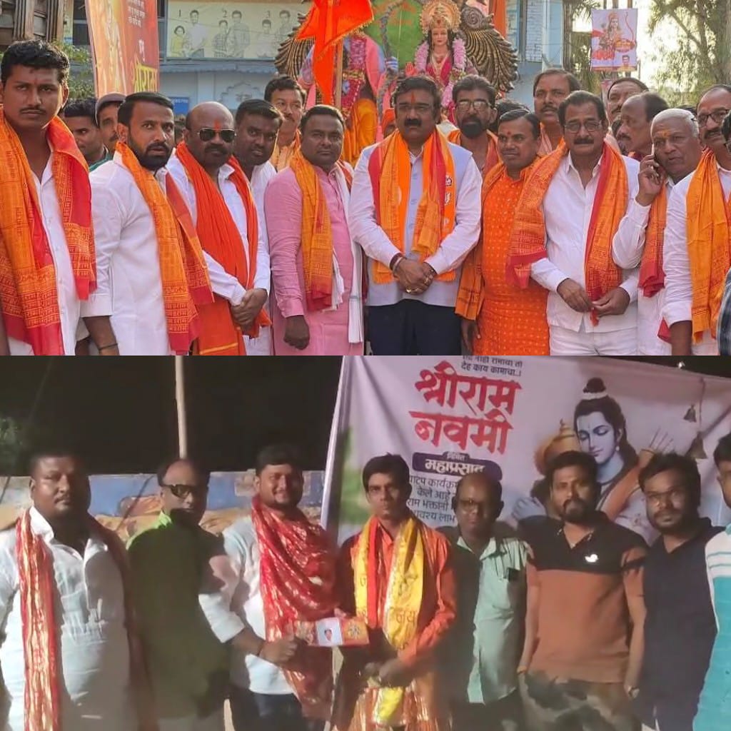 प्रभू श्रीराम जन्मोत्सवाच्या पार्श्वभूमीवर रविवारी सगळीकडेच विविध धार्मिक कार्यक्रमांची मांदियाळी दिसून आली असून देगलूर येथे हिंदू एकता दिवसनिमित्त प्रभू श्रीरामजी व सीता मातेच्या भव्य मूर्तीची शोभायात्रा देगलूर शहरातील छत्रपती शिवाजी महाराज चौक, बालाजी झेंडा, लाईन गल्ली येथून दुपारी ४ वा. शहरातील मुख्य मार्गाने काढण्यात आले.सदरील शोभायात्रा विश्व हिंदू परिषद व बजरंग दल संघटनेच्यावतीने आयोजित करण्यात आले.तर दुसरी शोभायात्रा बाजारपेठेतील हनुमान मंदिर येथून किशोर तोटावर व किरण कडलवार यांच्या नेतृत्वाखाली शहरातील मुख्य मार्गाने काढण्यात आली होती . या कार्यक्रमास आलेल्या राम भक्तांना प्रभू श्रीराम जन्मोत्सव निमित्त व शोभा यात्रेतील श्रीराम भक्त व सर्व हिंदू बांधव व माता-भगिनि फराळ व पिण्याच्या पाण्याची व्यवस्था खुशी सेवाभावी संस्थाचे सामाजिक कार्यकर्ते बबलु टेकाळे यांनी केले होते. या भव्य दिव्य शोभायात्रेमध्ये देगलूर शहरातील व तालुक्यातील अनेक पक्षाचे वरिष्ठ नेते व पदाधिकारी तसेच हजारोच्या संख्येने श्रीराम भक्त उपस्थित होते .