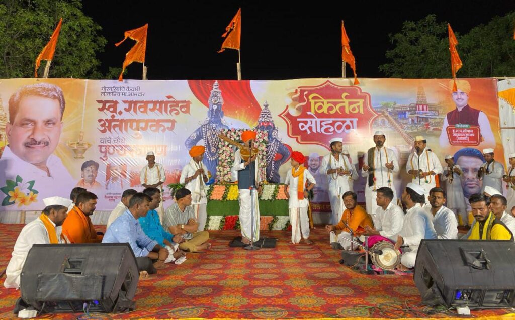 : कै. रावसाहेब अंतापूरकर यांच्या चतुर्थ पुण्यतिथीनिमित्त अंतापूर येथे आयोजित कीर्तन सोहळ्यात ह.भ.प. सोपान महाराज सानप यांनी आपल्या रसाळ वाणीतून उपस्थितांना मार्गदर्शन केले. या कार्यक्रमाला परिसरातील भाविकांची मोठी गर्दी झाली होती.