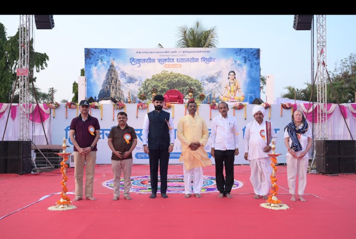 आळंदी..श्री ज्ञानेश्वर महाराज संस्थान कमिटी, आळंदी देवाची, पुणे आणि श्री शिवकृपानंद स्वामी फाउंडेशन गुजरात यांच्या संयुक्त विद्यमाने आळंदी येथे सुरू असलेले तीन दिवसीय हिमालयीन समर्पण ध्यान योग शिबिर (१० ते १२ एप्रिल २०२५) आज दुसऱ्या दिवशी अधिकच भाविकांच्या महासागराने गजबजले. संत ज्ञानेश्वर माऊलींच्या समाधीस्थळाच्या पावन परिसरात, आजही पहाटेपासूनच विविध वयोगटांतील हजारो भक्तांनी मुंबई मराठा फ्रुट वाला धर्मशाळा मैदान परिसरात लागलेली गुरुतत्त्व प्रदर्शनीस भेट देण्यासाठी गर्दी केली होती. संध्याकाळी सूर्यास्त समयी परमपूज्य श्री शिवकृपानंद स्वामीजींच्या प्रवचन आणि ध्यानाच्या कार्यक्रमाचा लाभ सर्वांनी आतुरतेने घेतला. यानिमित्ताने प्रमुख अतिथी म्हणून देहू देवस्थानचे अध्यक्ष ह. भ. प. पुरुषोत्तम म. मोरे, ॲडिशनल डायरेक्टर ऑफ जनरल ऑफ वेस्ट बंगाल पोलीस अजय रानडे अपर आयुक्त -आदिवासी विभाग ठाणे गोपीचंद कदम, श्री ज्ञानेश्वर शिक्षण संस्थेचे सचिव अजित वडगावकर ,तहसीलदार निलेश जाधव ,राणा सूर्यवंशी ,सुसाने वेबनार जर्मनी ई.मान्यवर उपस्थित होते .त्यांचे हस्ते कार्यक्रमाचे दीप प्रज्वलन करण्यात आले.