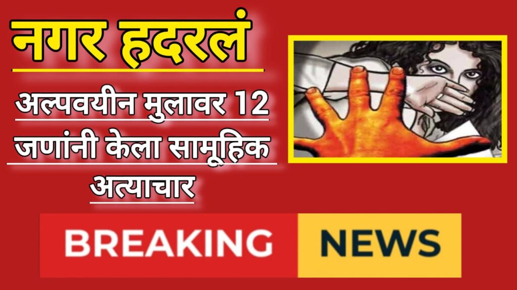 मित्राच्या घरात झोपलेल्या अल्पवयीन मुलाला 12 जणांच्या टोळक्याने दरवाजा तोडून बळजबरीने मोटारीत बसवून बाह्यवळण रस्त्यावरील नेप्ती मार्केटजवळील मोकळ्या जागेत नेले. तिथे त्याला मारहाण करीत नग्न करून सामूहिक अत्याचार केला.