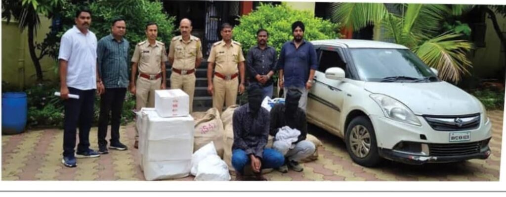 देगलूर. तालुका आहे कर्नाटक व तेलंगाना या राज्याच्या सीमेवरती वसले असून राज्यातून मोठ्या प्रमाणावर दळणवळणाची व माल वाहतुकीचे गाड्या मोठ्या प्रमाणावर चालत असतात. याच दरम्यान देगलूर तालुक्यातील वझरगा येथे 30 जून रोजी संध्याकाळी सातच्या सुमारास देगलूर पोलीसांनी प्रतिबंधित गुटका व तंबाखूजन्य पदार्थांचे अवैधरित्या वाहतूक करणाऱ्या दोन जनांवर कारवाई केले असून, एकूण नऊ लाख वीस हजार चारशे रुपयांचा मुद्देमाल जप्त केले. ही कारवाई पोलिसांनी मिळालेल्या गुप्त माहिती नंतर तात्काळ कृती करत केली. या कारवाईत शेख साजिद, शेख जलाल बागवान वय (३८) शेख अख्तर शेख,शेख गफार बागवान (दोघेही रा.सदर बाजार,जामा मस्जिद जवळ हिंगोली)या दोन आरोपींना अटक करण्यात आली.हे दोघे पांढऱ्या रंगाच्या स्विफ्ट डिझायर MH.12.KN 6039 कारमधून प्रतिबंधित सुगंधी तंबाखू आणि गुटख्याचे वाहतूक करत असल्याची माहिती देगलूर पोलिसांना मिळाली होती.त्यानुसार पोलिसांनी वझरगा येथे सापळा रचून संबंधित कार अडवून तपासणी केली असता,मोठ्या प्रमाणावर प्रतिबंधित माल आढळून आला. पोलिसांनी जप्त केल्या मुद्देमाल पुढील वस्तूंचा समावेश आहे.