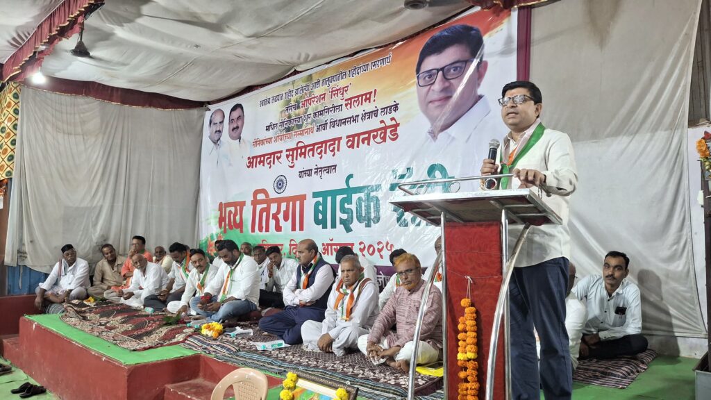 वर्धा – आष्टी :- ऑपरेशन सिंदूरमुळे भारतीय सैन्याची शक्ती जगाला समजली.पहलगाममधे दहशतवाद्यांनी अतिशय निर्घृणपणे पर्यटकांची हत्या केली. त्यामुळे दहशतवाद्यांना नेस्तनाबूत करण्यासाठी प्रधानमंत्री नरेंद्र मोदी यांच्या नेतृत्वाखाली भारतीय सैन्याने ऑपरेशन सिंदूर राबवलं. यात दहशतवाद्यांचे ९ तळ उद्ध्वस्त करण्यात आले,आणि जगाने पाहीले हा उत्तर देणारा भारत आहे.या देशाचं नेतृत्व मोदीजींसारखे खरे राष्ट्रभक्त करत आहे.पाकिस्तानने भारतावर हल्ला करण्याचा प्रयत्न केला, मात्र त्यांचा हल्ला यशस्वी होऊ शकला नाही. भारताची संरक्षण प्रणाली इतकी मजबूत आहे की ती भेदण्याची क्षमता पाकिस्तानची नाही असे आमदार वानखेडे म्हणाले. ही तिरंगा बाईक यात्रा सैन्यदलाच्या शौर्याला अभिवादन करण्यासाठी आहे.असे प्रतिपादन आमदार सुमित वानखेडे यांनी तिरंगा बाईक रैली च्या समारोपीय सभेला संबोधीत करतांना लहानआर्वी येथे केले.साहूर येथुन स्वातंत्र्य लढ्यात शहीद झालेल्या आष्टी तालुक्यातील शहिदांच्या स्मरणार्थ व ऑपरेशन सिंदूर मधील सैनिकांच्या शौर्याच्या सन्मानार्थ आर्वी विधानसभेचे आमदार सुमित वानखेडे यांच्या नेतृत्वात व सुधीर दिवे यांच्या प्रमुख उपस्थितीत भव्य तिरंगा बाईक रॅलीचे आयोजन करण्यात आले होते.यावेळी रॅलीत भारत मातेचा रथ देखील विशेष आकर्षण ठरत होता.या भारत मातेच्या रथाचे धाडी,आष्टी, ममदापूर,तळेगाव,चिस्तुर,आनंदवाडी,भारसवाडा,खडकी,किन्हाळा व लहान आर्वी येथे ठिकठिकाणी जंगी स्वागत करीत पुजन करण्यात आले.यामुळे गावे भारत मातेच्या जयघोषाने दुमदुमली होती.यावेळी कार्यक्रमाला सुधीर दिवे देखील उपस्थित होते.दिवे म्हणाले,ऑपरेशन सिंदूर मध्ये स्वतःच्या जिवाची पर्वा न करता आपल्या शुरविर सैनिकांनी पाकिस्तानातील अतिरेक्यांना ठार केले.व पाकिस्तानलाच नव्हे जगाला भारताची ताकद काय आहे ते कळले.त्याच सैनिकांच्या सन्मानार्थ आपण ही तिरंगा बाईक रॅली काढली आहे.या देशावर आता वाकड्या नजरेने बघण्याची ताकद आता कोणात नाही.भारत हा मोदींजींच्या नेतृत्वातील बलशाली राष्ट्र आहे.याच सैनिकांच्या शौर्याच्या सन्मानार्थ हर घर तिरंगा मोहिमेंतर्गत आपल्या घरावर तिरंगा लावावा.असे सुधीर दिवे यांनी सांगीतले.यावेळी कार्यक्रमाला आमदार सुमित वानखेडे,सुधीर दिवे,भाजपा तालुकाध्यक्ष सचिन होले, वर्धा जिल्हा महामंत्री कमलाकर निंभोरकर,राजेश ठाकरे,रियाज खानसर,सुनिल साबळे,विशाल गाडगे,गजानन भोरे,गंगाधर मडावी,प्रशांत काकपुरे,श्रीराम ठोंबरे,आरती जाने, प्रमोद कापसे, दिलीप होले, साहेबराव देशमुख, जगदीश राठी, धीरज शेटे, तेजराज निंभोरकर, किशोर होले, काशिनाथ देशमुख इ. सह मोठ्या प्रमाणात नागरिक उपस्थित होते.क