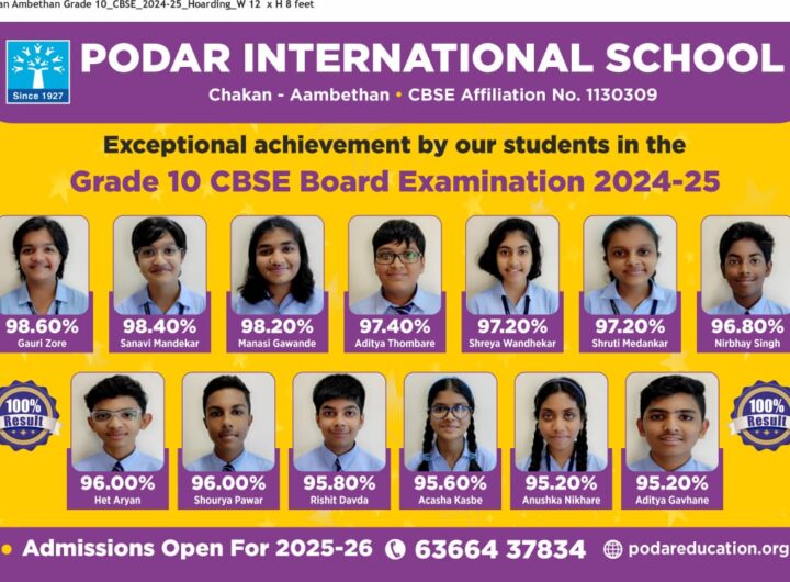 सी.बी.एस. ई.१०वी च्या परीक्षेत पोदार इंटरनॅशनल स्कूल आंबेठाण चाकणच्या विद्यार्थ्यांनी मिळविले उत्तुंग यश. 1 min read महाराष्ट्र सी.बी.एस. ई.१०वी च्या परीक्षेत पोदार इंटरनॅशनल स्कूल आंबेठाण चाकणच्या विद्यार्थ्यांनी मिळविले उत्तुंग यश. दै चालु वार्ता 5 months ago दै चालु वार्ता प्रतिनिधी पिंपरी चिंचवड बद्रीनारायण घुगे सी. बी एस. ई.१०वी वर्ष २०२४-२५ च्या परीक्षेत...Read More