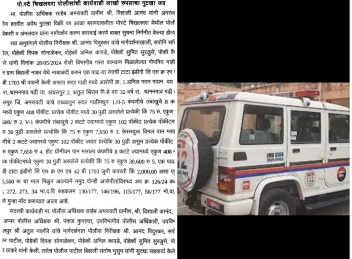 दैनिक चालु वार्ता चिखलदरा प्रतिनिधी प्रवीण मुंडे.. माननीय पोलीस अधीक्षक साहेब अमरावती ग्रामीण श्री विशाली आनंद यांनी...