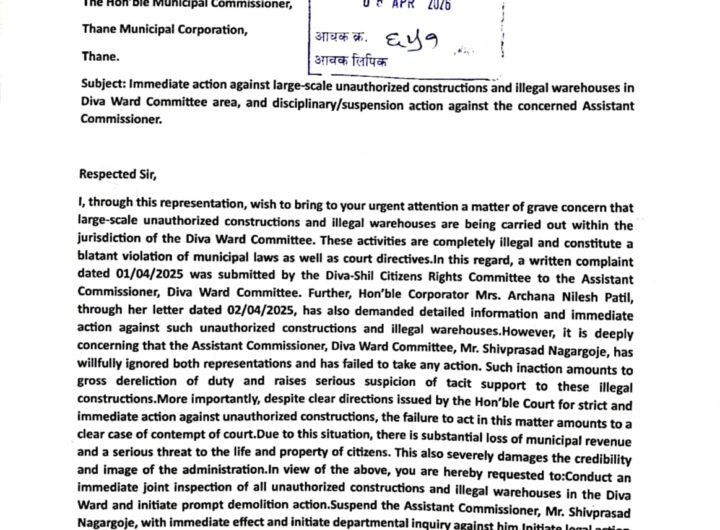 ठाणे प्रतिनिधी (नागेश पवार) दिवा:-ठाणे महानगरपालिकेच्या दिवा प्रभाग समिती हद्दीत मोठ्या प्रमाणावर अनधिकृत बांधकामे व गोदामे उभारली...