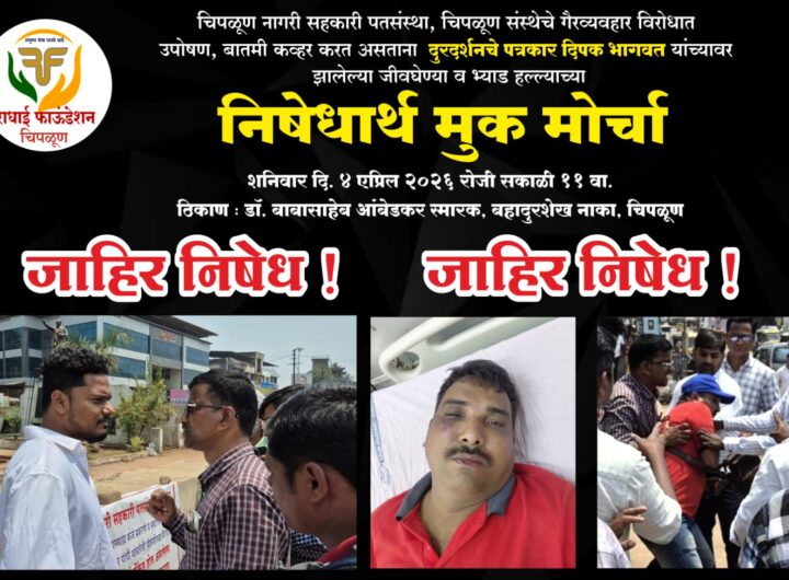 प्रतिनिधी | स्वाती हडकर चिपळूण : पत्रकारावर झालेल्या भ्याड हल्ल्याच्या निषेधार्थ तसेच संबंधित आरोपींना अद्याप अटक...