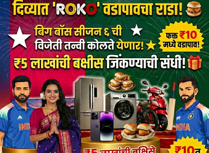 🔥 ब्रेकिंग न्यूज: दिव्यात ‘ROKO’ वडापावचा धमाका! १० रुपयांत मेजवानी आणि ५ लाखांची बक्षिसे; बिग बॉस विजेती तन्वी कोलतेची हजेरी! 1 min read महाराष्ट्र 🔥 ब्रेकिंग न्यूज: दिव्यात ‘ROKO’ वडापावचा धमाका! १० रुपयांत मेजवानी आणि ५ लाखांची बक्षिसे; बिग बॉस विजेती तन्वी कोलतेची हजेरी! दै चालु वार्ता 4 hours ago ठाणे प्रतिनिधी (नागेश पवार) दिवा : गेल्या काही दिवसांपासून संपूर्ण दिवा शहरात ज्या ‘गूढ’ नावाची चर्चा होती,...Read More